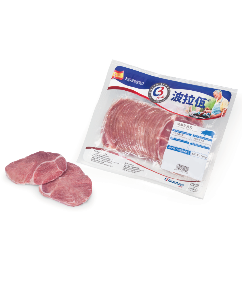 產(chǎn)品介紹:西班牙波拉佤豬梅花肉片——西班牙原包裝進口,精選有細(xì)細(xì)肥肉縱橫交錯,肉質(zhì)細(xì)嫩不油膩。原始整塊切割、無污染、無添加、無注脂、無激素、保留豬肉的天然口感。