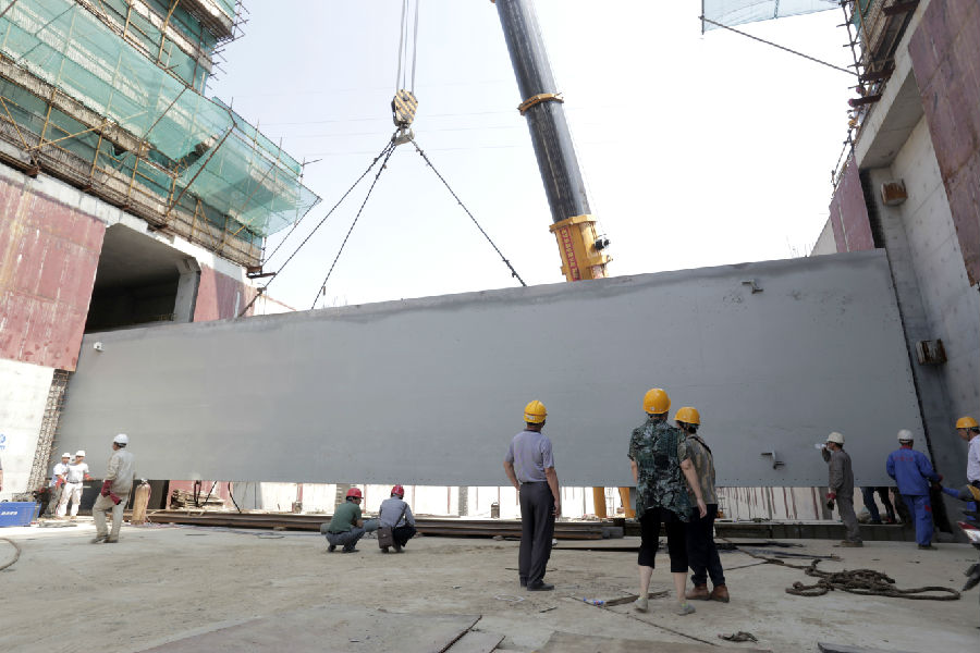 芒稻閘項(xiàng)目完成上閘首閘門吊裝