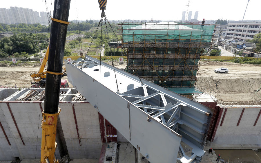 6月17日,由水機(jī)公司承建的芒稻閘項(xiàng)目上閘首閘門吊裝成功。閘門分兩片,單片重70噸,運(yùn)輸、吊裝難度非常大,為此,水機(jī)公司組織精兵強(qiáng)將,認(rèn)真查看運(yùn)輸線路、吊裝位置,制定切實(shí)可行的預(yù)案。吊裝現(xiàn)場(chǎng),隨著指揮哨聲的響起,兩輛運(yùn)送閘門的大型平板汽車駛?cè)胫付ㄎ恢,一臺(tái)500噸和一臺(tái)200噸的汽車吊緊密配合將閘門起吊、進(jìn)行空中轉(zhuǎn)體、側(cè)向移位、斜插門庫(kù)就位一氣呵成,猶如體操運(yùn)動(dòng)員精準(zhǔn)完美的表演。目前,下閘首閘門已完成制作進(jìn)入防腐階段。