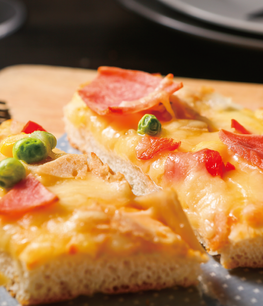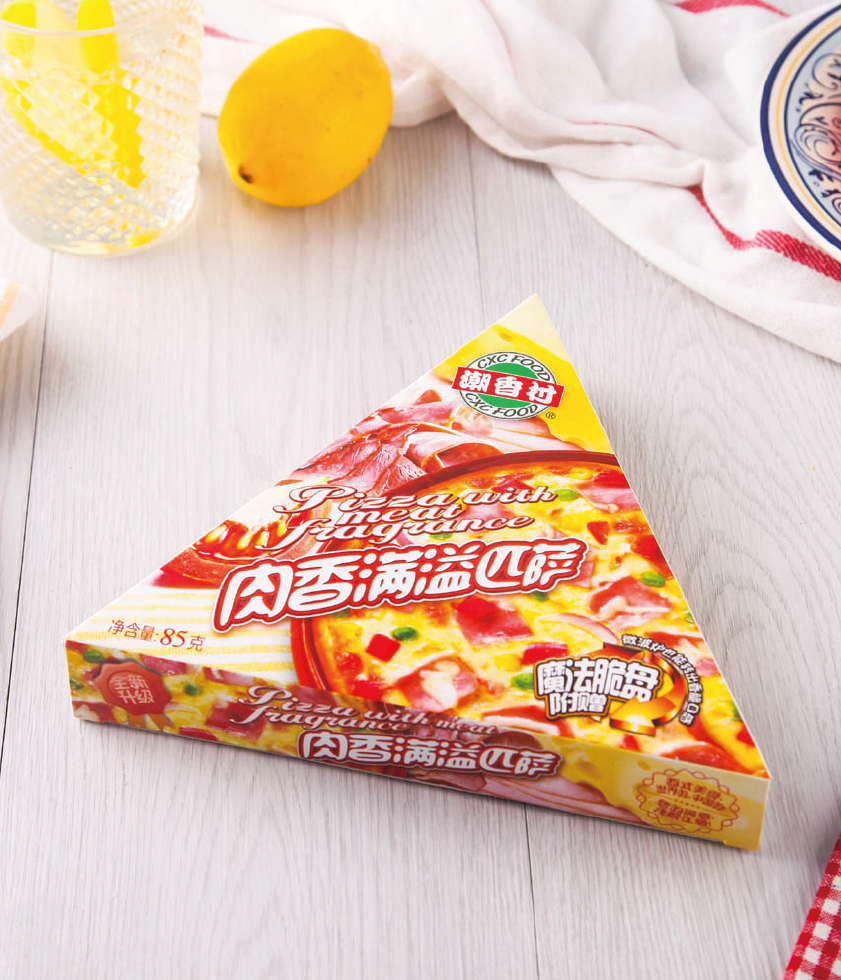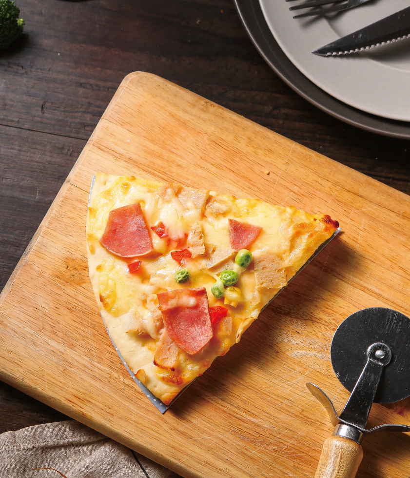 產(chǎn)品介紹:肉香滿(mǎn)溢匹薩——肉食主義者的心頭好!火腿、午餐肉,搭配青豆、洋蔥、紅椒、玉米,佐以酸甜可口的番茄醬,和奶香濃郁的芝士,無(wú)肉不歡,十足享受。