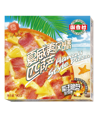 產(chǎn)品介紹:夏威夷風(fēng)情匹薩——酸酸甜甜、清爽可口的菠蘿,和熏制入味、肥瘦得當(dāng)?shù)呐喔谌槔蚁銤獾奈兜赖囊r托下,演繹出了這款經(jīng)典口味的匹薩。