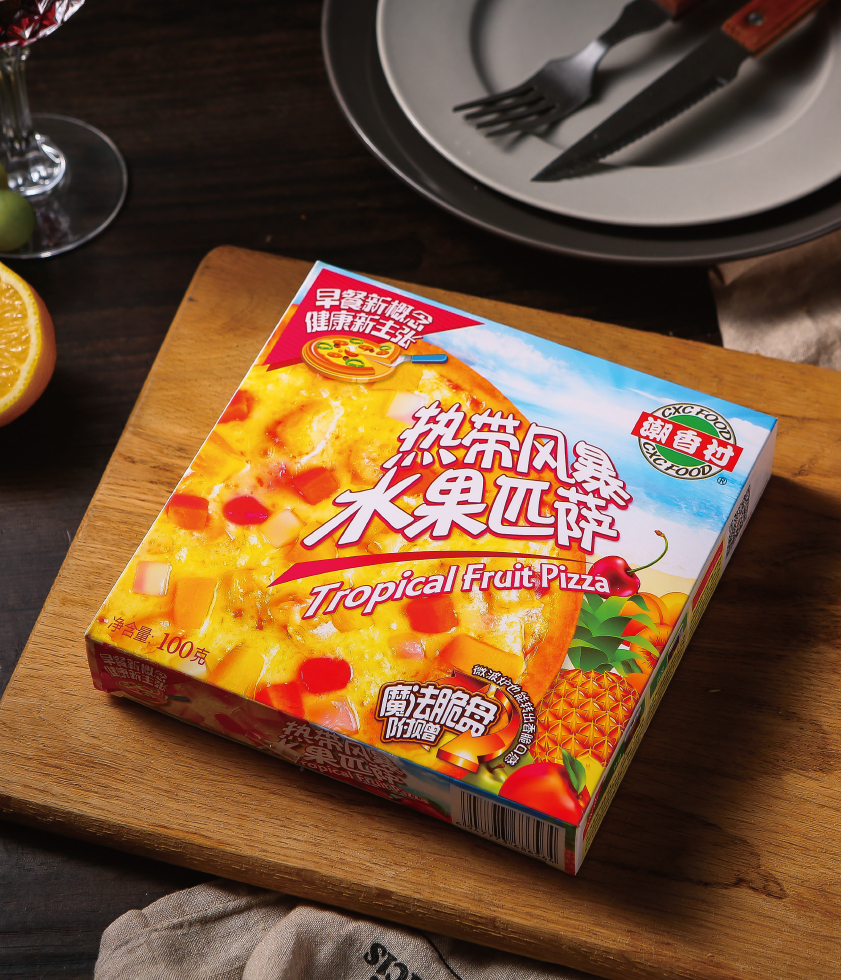 產(chǎn)品介紹:熱帶風(fēng)暴水果匹薩——蜜桃、菠蘿、蒟蒻等等各種鮮脆多汁的水果,與番茄醬的酸甜、乳酪的濃郁交織在一起,交錯(cuò)的甜味和豐富營(yíng)養(yǎng)帶來(lái)幸福元?dú)獾脑绮托赂拍睢?/p>