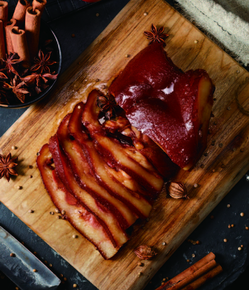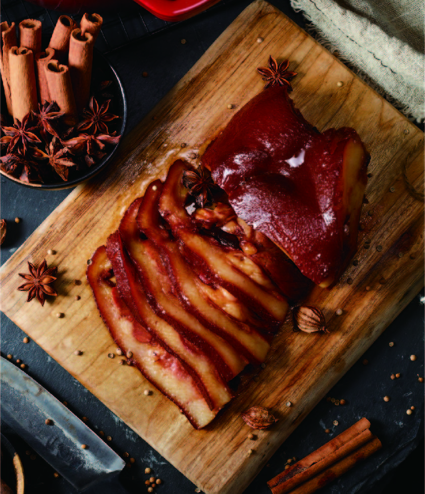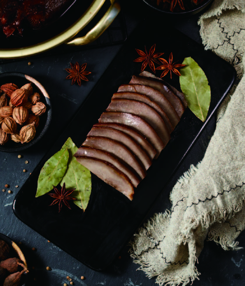 產(chǎn)品介紹:潮州鹵豬頭肉——經(jīng)過陳年老鹵鹵制的豬頭肉,Q彈爽口,膠質(zhì)滿滿,垂涎欲滴,傳承百年的正宗陳鹵水沁入每一寸肌理,回味悠長。